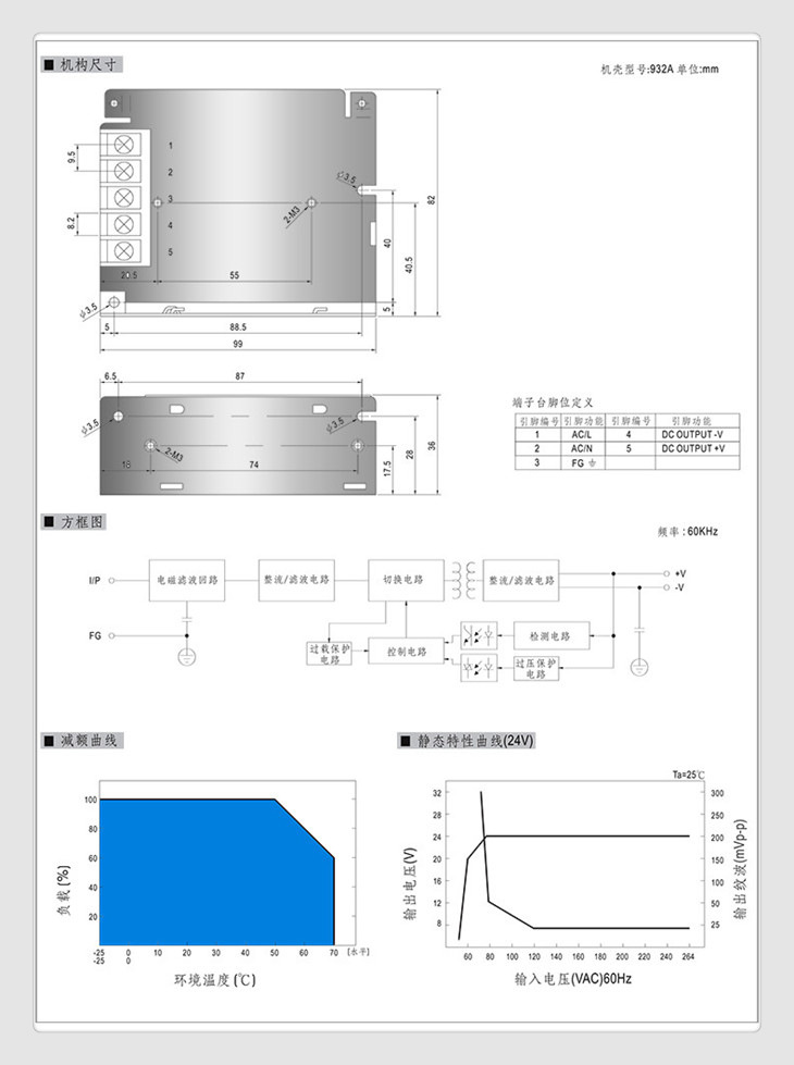 过载保护 过电流点在110%~150%,自动侦测自动复原