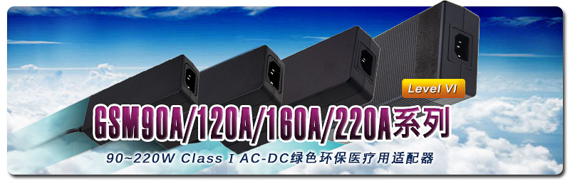在完整推出符合最新能耗标准(EISA 2007/DoE Level VI)的Class II医疗类节能适配器─GSM06B~220B (6~220W B type)系列产品线後,为进一步满足终端医用设备或系统安装於公共医疗场所中,除要求电源适配器需符合最新能耗标准外,且由於设备设计有接地需要的Class I (有FG)应用需求,galaxy银河继GSM40A(40W)/60A(60W)上市後,紧接着快速推出GSM90A(90W)/120A(120W)/160A(160W)/220A(220W)系列。